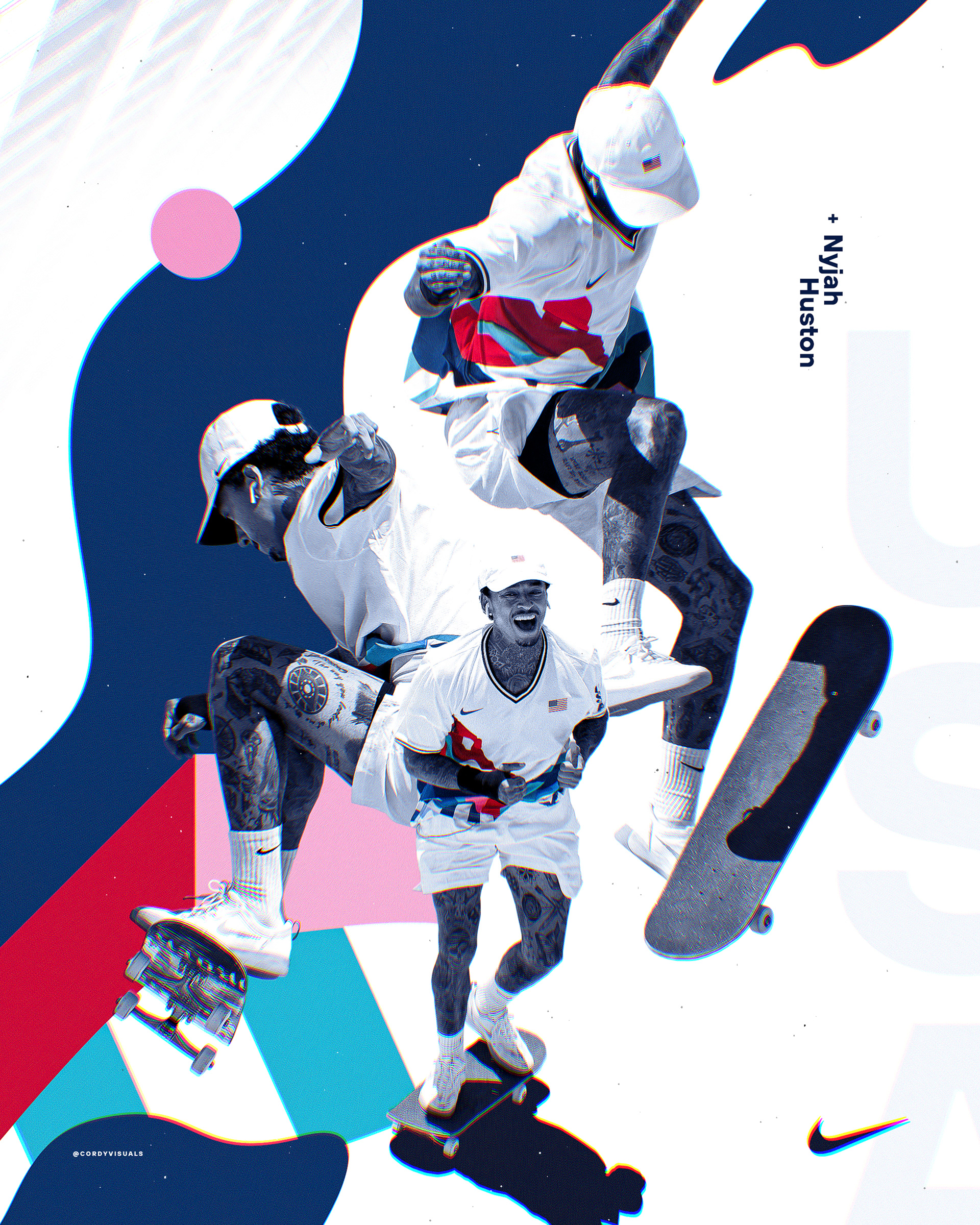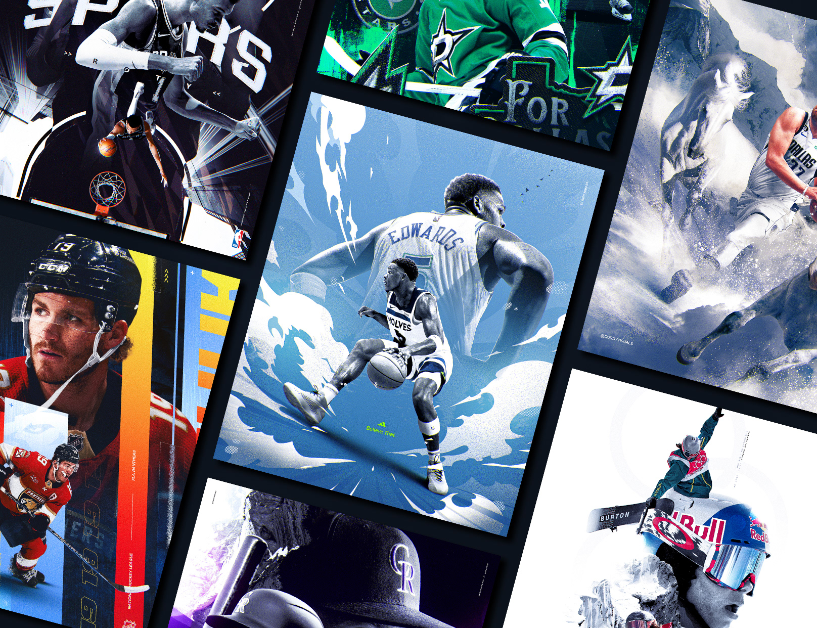The following arrangement of graphics showcase athletes in sports around the world. Entering 2024, my main focus was to branch out beyond the usual, emphasizing composition and color.
